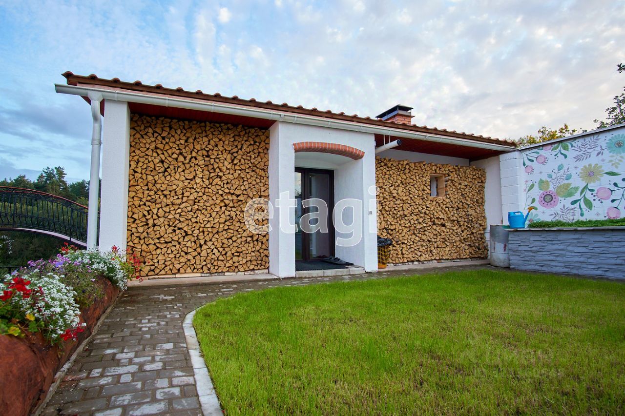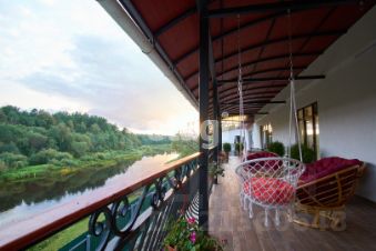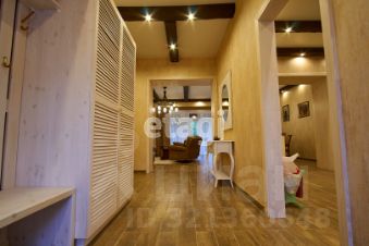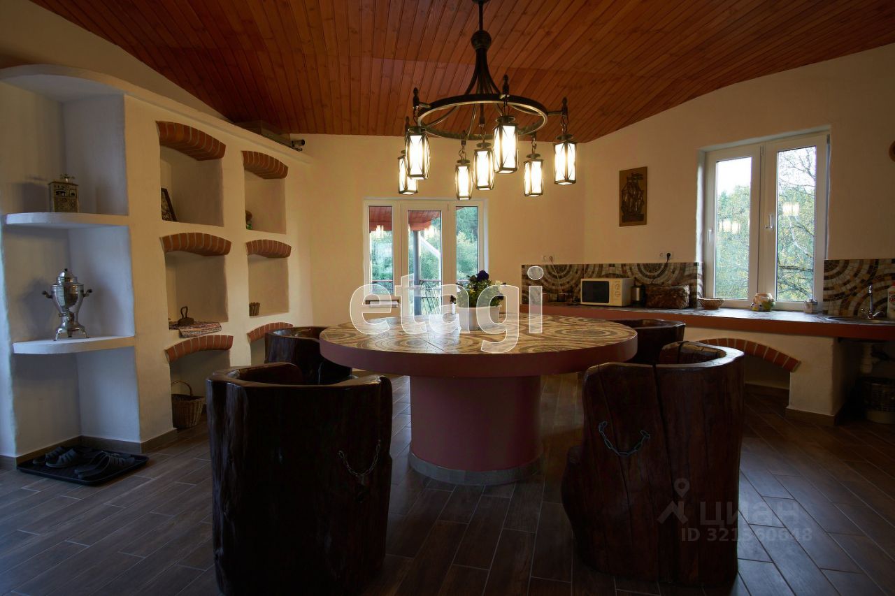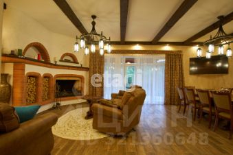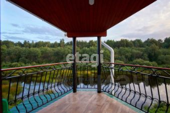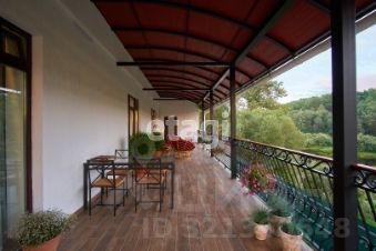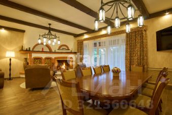 Большая гостиная с камином, кухня, три спальни, четыре санузла с душевыми, гардеробные, отапливаемый гараж на 3-4 автомобиля, бассейн на 60 куб. м. (84,7 м.) с парилкой. Терраса длинной 22 м., и шириной 3 м. с видом на реку и лес, заказная мебель, двери из массива, кованные люстры.