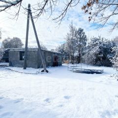 Огороженная территория: Участок обнесен сеткой рабицей, что обеспечивает приватность и безопасность.