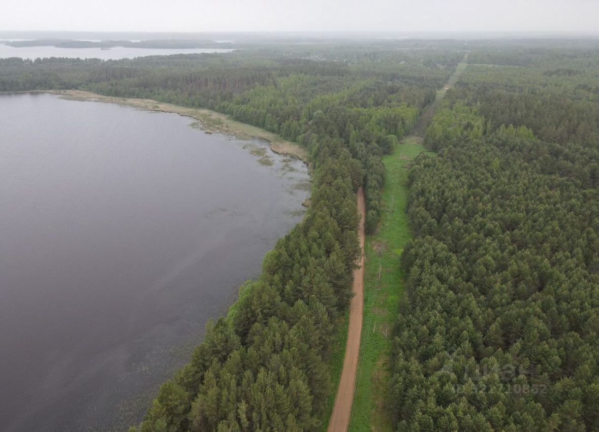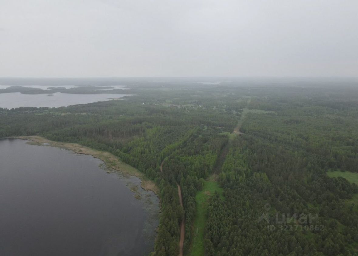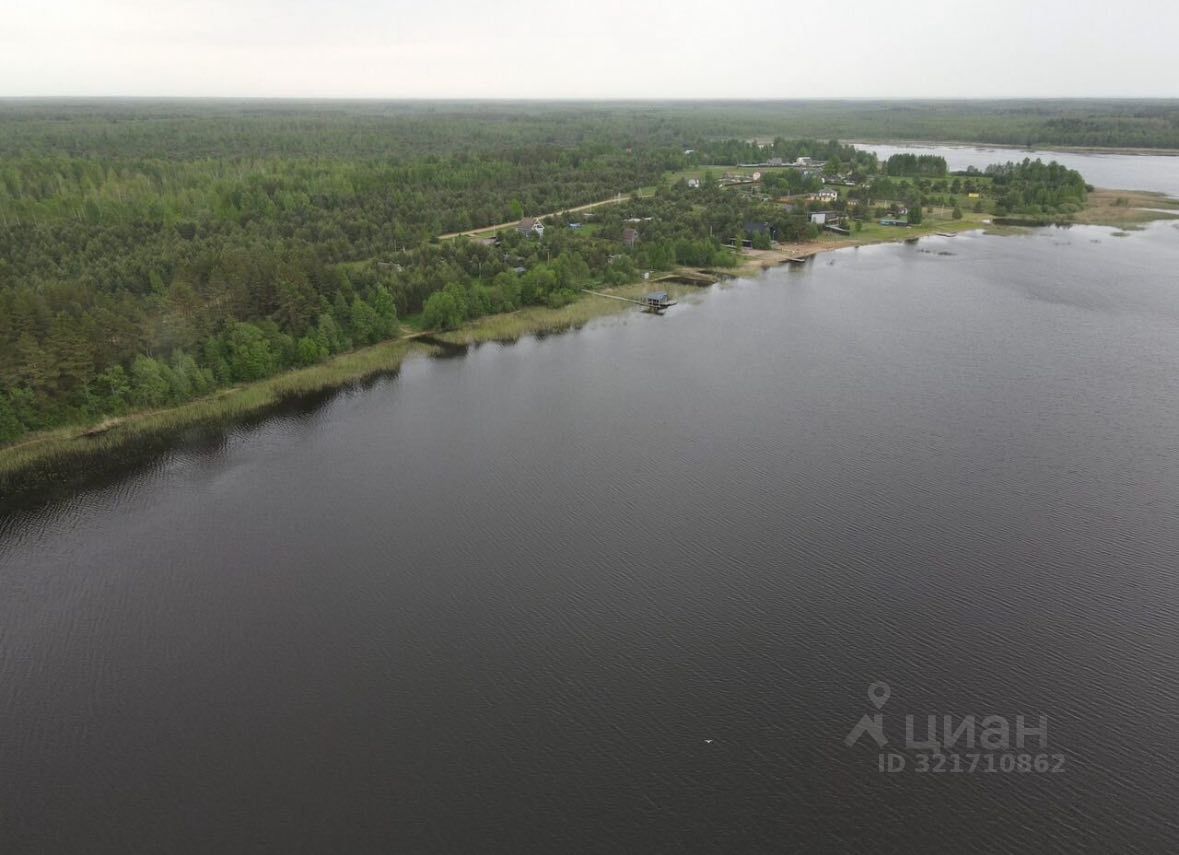 Правильной формы. Сухой (участок имеет небольшой уклон в сторону озера). На участке редкий сосновый лес. Есть много мест для размещения домов вокруг сосен. До воды 60 метров. Расположен в самом населенном пункте.