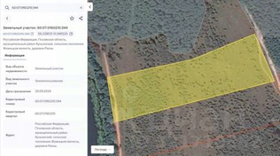 Кадастровый номер 60:07:0160210:344, площадь 44 189 кв.м (441 сотка)
