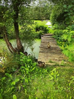 — Делится на две части прудом, где можно разводить рыбу или освежиться после бани!