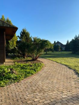 Постройки: жилой дом (142,3 кв. м., сруб бревно, 2 этажа, удобства), баня (300 кв. м., сруб бревно, 2 этажа, внутренняя отделка, удобства), гостевой дом (32,3 кв. м., кирпич, удобства), гараж, автомобильная стоянка, отдельно стоящий каменный погреб, хозяйственные постройки.