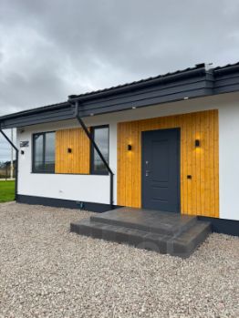 В доме три спальни, кухня - гостиная с выходом на заднюю террасу, прихожая, бойлерная , санузел с ванной комнатой.