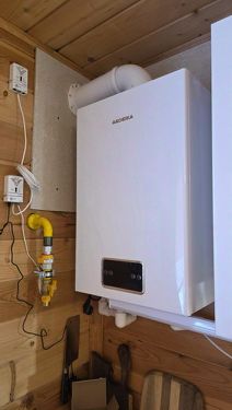 Отопление от газового котла 16 КВт, на случай отключения газа предусмотрен Электрокотел 7 на КВт + аварийный генератор 6.5 КВт (на случай отключения электроэнергии).