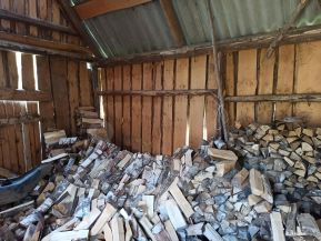 На участке имеются три хозяйственные постройки: сарай для личных вещей, скотник и большой дровник с запасом дров. Бани нет.