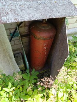 Дом щитовой, но внешне обложен кирпичом. Состояние удовлетворительное. В доме три комнаты, кухня с печкой и туалет. Питьевая вода из колодца, который расположен в 40 метрах от дома. Газ привозной. Газовый баллон расположен на улице.