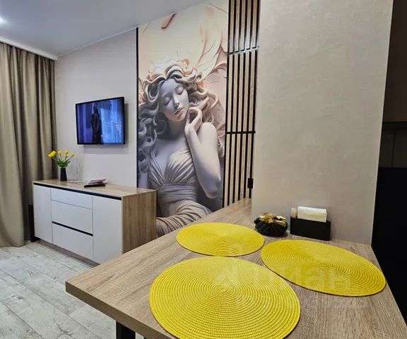 Дизайнерский pемонт, новая мебель (в спальне — двуспaльнaя кpовать moon 160200 с ортопедическим матрасом той же фирмы, в кухне-гостиной — диван pushe со спальным местом 160200).