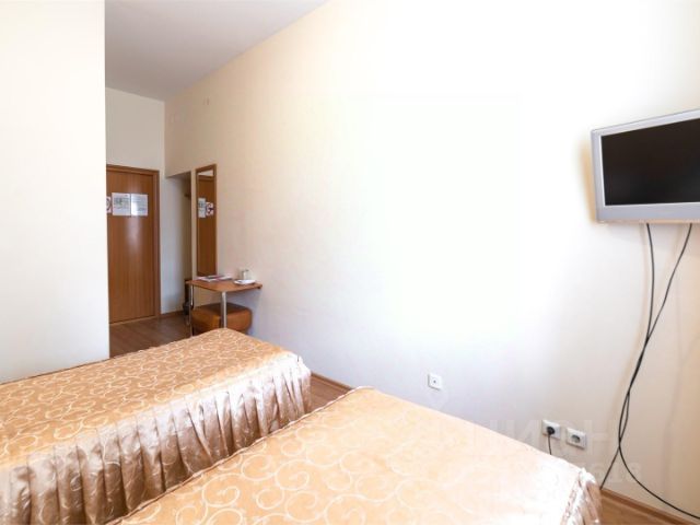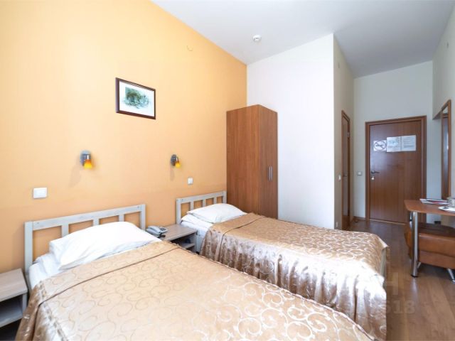 В номере либо одна двуспальная либо две раздельных кровати,шкаф,стол,стул, телефон,телевизор,чайная станция,две кружки,два мусорных ведра,два стакана,бутылка воды,санузел и душ, фен,тапочки,щётка для одежды,губка для обуви,зеркало.