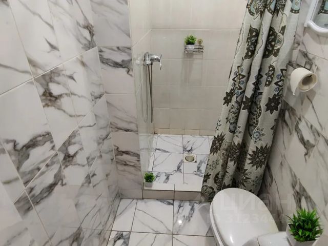 чистый санузел (душ, туалет, раковина, зеркало на стене, бойлер для нагрева воды),
